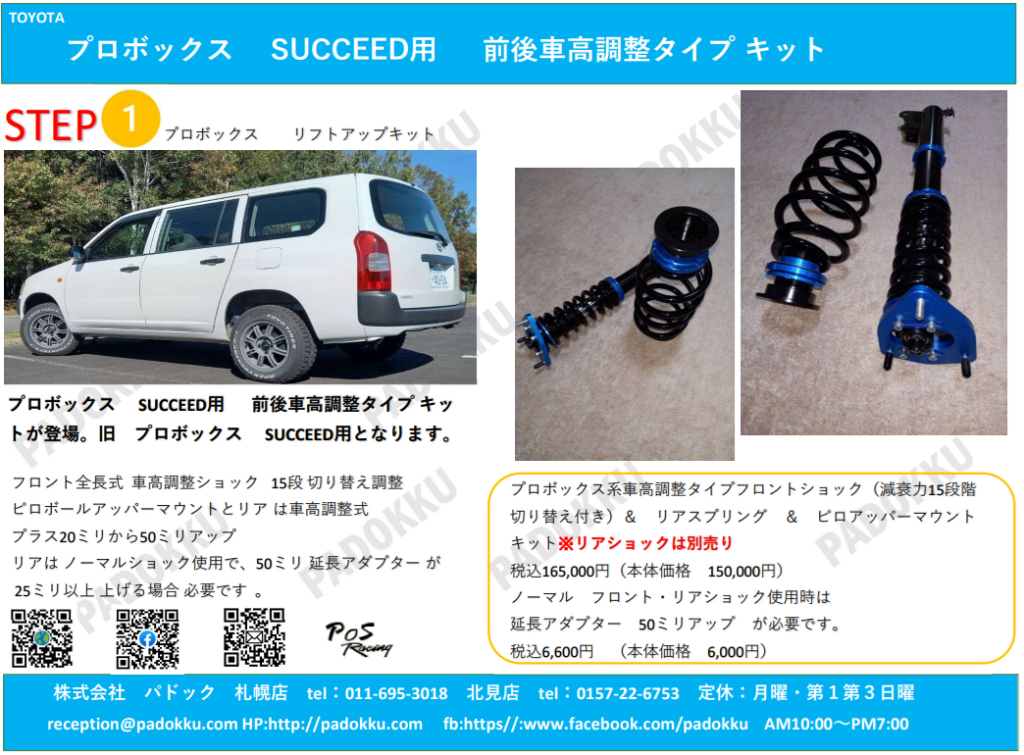 旧プロボックス SUCCED用 前後車高調タイプ キット