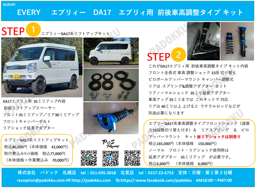新商品 エブリィー DA17 前後車高調整タイプキット